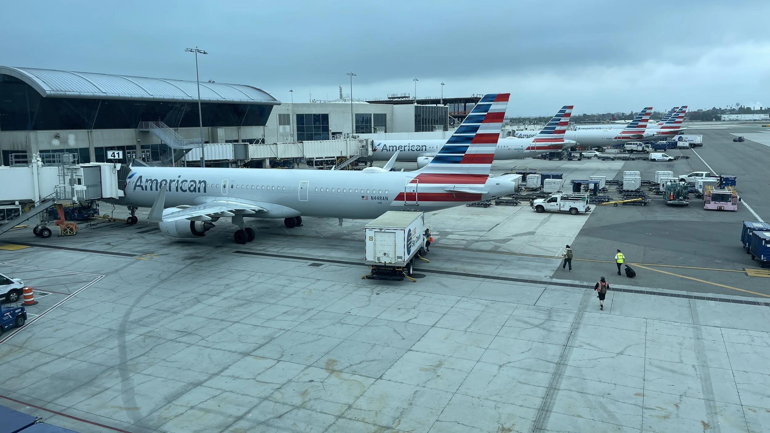 A cool view of the Los Angeles Airport during a raining day